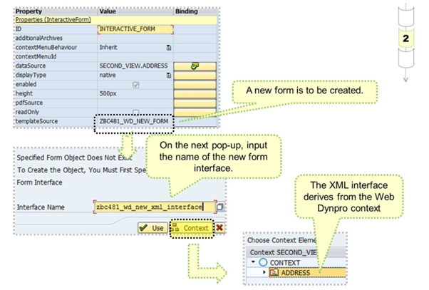 Before a new online PDF form is built via forward navigation, create the Web Dynpro context elements that you want to use in the PDF form.