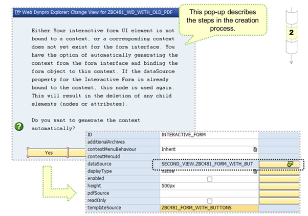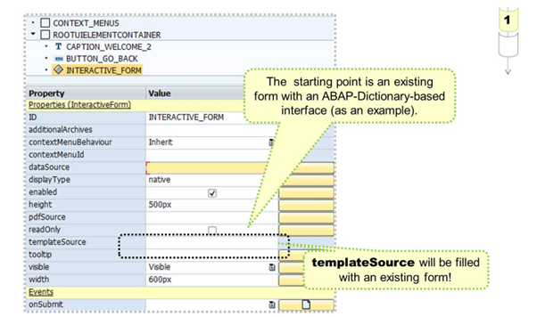 By entering the name of the existing form, the Web Dynpro context is built automatically.