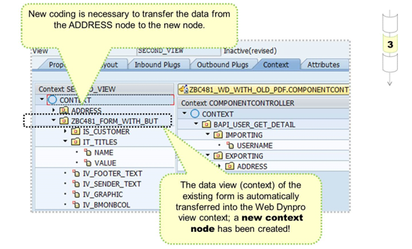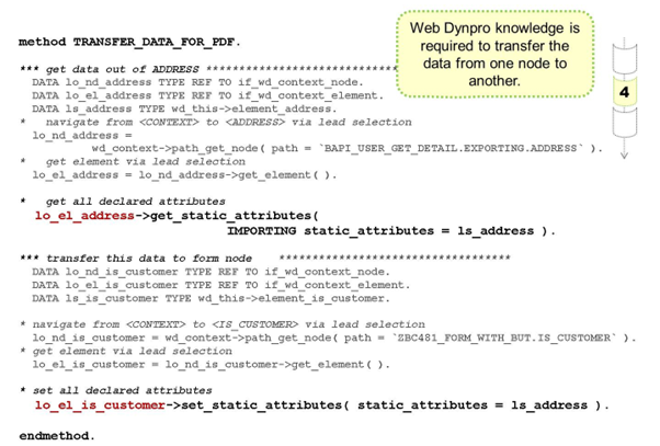 The figure above shows how data from the ADDRESS context node is transferred to the IS_CUSTOMER context node used on the form.