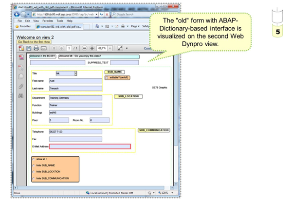 In this example, an existing form is used as an online PDF inside Web Dynpro.