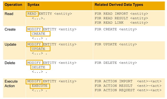 The operands of EML statements are mainly special data objects for passing data to and receiving results or messages from RAP BOs. These data objects are structures and internal tables whose types are tailor-made for this purpose and derived from the RAP BO definition, namely the involved CDS views and behavior definitions.