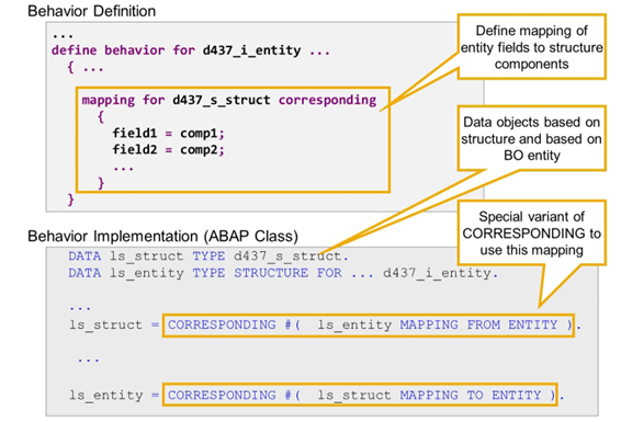 In RAP, it is possible to define a central, declarative mapping in the behavior definition and to use this mapping in the behavior implementation with a special variant of the CORRESPONDING expression.
