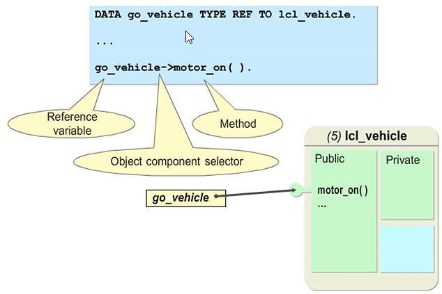 CALL METHOD ref->method_name is the syntax used to call Instance methods. When calling an instance method from within another instance method, you can omit the instance name ref. The method is automatically executed for the current object.
