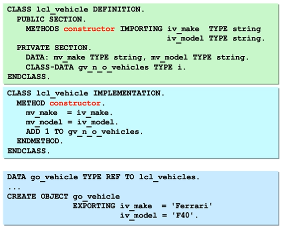 The instance constructor is a special instance method in a class and is always named CONSTRUCTOR. The constructor is automatically called at runtime with the CREATE OBJECT statement.