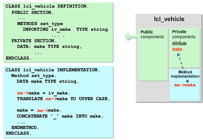 You can address an object itself by using the predefined reference variable ME within its instance methods. You are not required to use me-> as a prefix in such cases, but you can use it to improve readability.