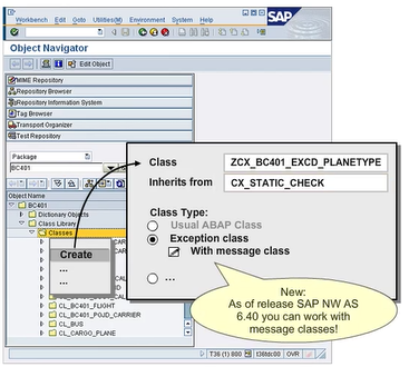 You use Class Builder to create a global class as described in SAP Library. When you enter the name of global class, use the prefix CX_. Choose the Exception Class option as the class type.