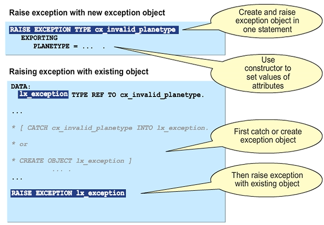 RAISE EXCEPTION TYPE <exception_class> [EXPORTING ...].