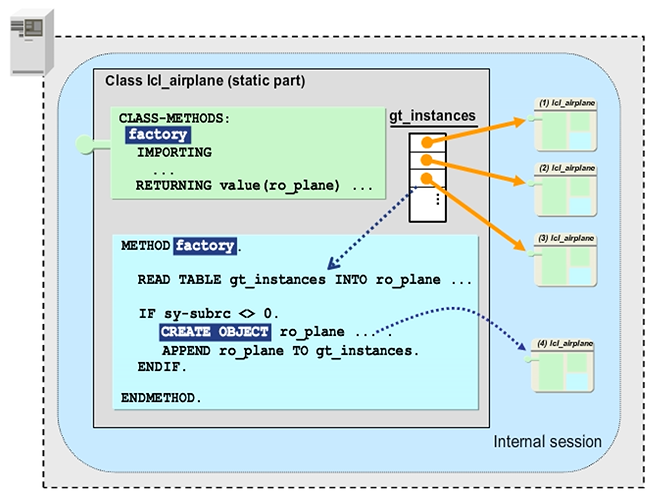 Hint: In this example, it is not necessary to make attributes public for the READ TABLE statement. As the factory method lies within the class, it has full access to all private attributes.