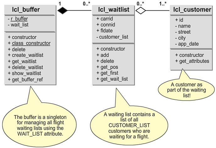 Using the ABAP objects program, you need to implement the class diagram in the model and be able to maintain a waitlist for each flight. It is possible to maintain a waiting list for each flight row from table SFLIGHT with the key CARRID, CONNID, and FLDATE.