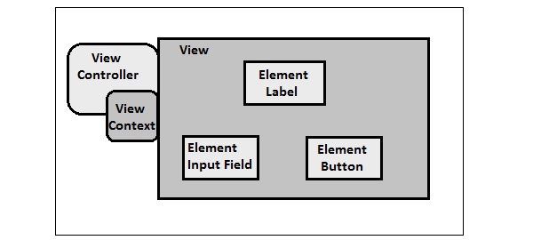 The controller is used to process the user request and processing of data. Context contains data to which the elements of view are bound.