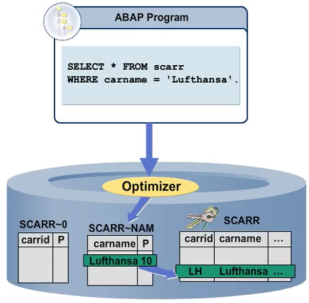 An index can be considered to be a copy of a database table reduced to certain fields. This copy stores the data in sorted form. Sorting the data enables fast access to the records of the table (for example, using a binary search). An index contains those fields of the database table which are relevant for database queries. The index also contains a pointer from the index entry to the corresponding table entry so that all the field contents can be read.