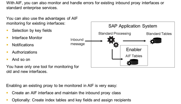 If you process a message, you are able to see the source structure content in Monitoring and Error Handling. Furthermore, you can do error handling, restart or cancel a message if it ran into an error in AIF.