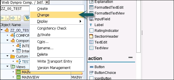 To set ABAP workbench in the change mode, select the view and go to context to Change.