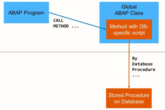The database procedure is defined and implemented as a method of a global class. The implementation of such a method consists of a database-specific script that can only be executed on the database but not on the ABAP stack.