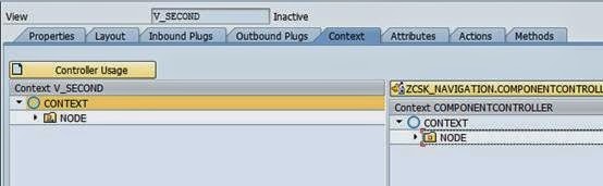 Step 8: In the context tab of the second view drag and drop the node of the component controller to the context of our view.