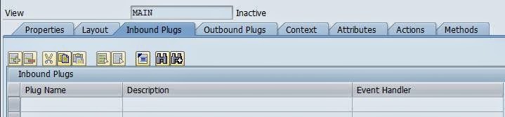 Plugs are required for the navigation between the views. Inbound plugs consist of plugs which are pointing into the view. Unlike outbound plug, the inbound plug consists of the event handler method which will be executed before displaying the view.