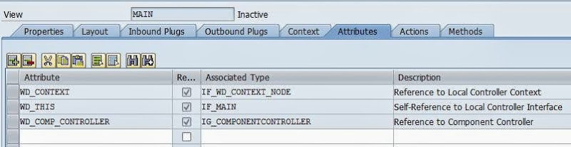 Attributes are similar to that of the attribute tab discussed in the component controller. Here in the view controller, you will be able to see the handler to the component controller with reference to the interface of the type IG_(Cross controller). Using this handler the attributes and methods of the component controller can be accessed.