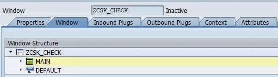 In the window tab, we will be able to see the views that are embedded in the window, inbound and outbound plug of each view and the view that is marked as default. Here we can also specify the navigation link between the views using the view plugs.