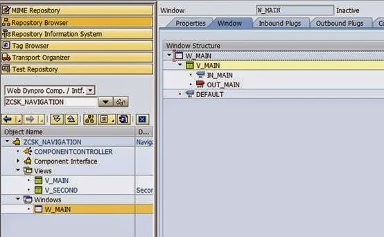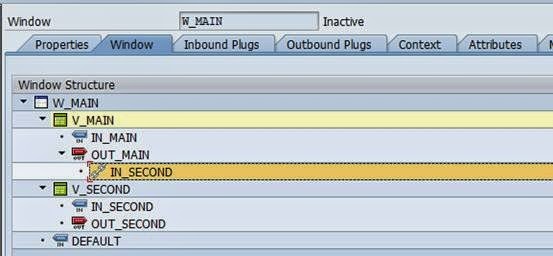 Now you will see the navigation link is formed between the views indicated by a chain symbol. Now when ever the outbound plug out_main is triggered the system will navigate from the first view to the second view. Similarly, create the path from the second view to the first view.