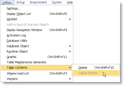 If this menu path is disabled then go to the Delivery and Maintenance tab and enter “Display/Maintenance Allowed” in “Data Browser/Table View Maint.” Listbox.