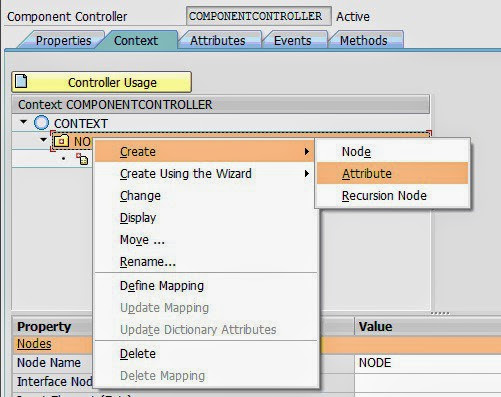 Go to the context tab of the component controller and create an attribute in the node which we created in the previous application.