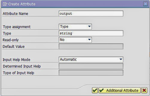 We now require an attribute to be binded to the text view. Create an attribute output of type string as shown below.