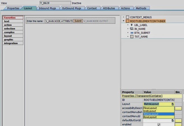 To arrange the layout double click on the ROOTUIELEMENTCONTAINER and change the property of layout to matrix layout.